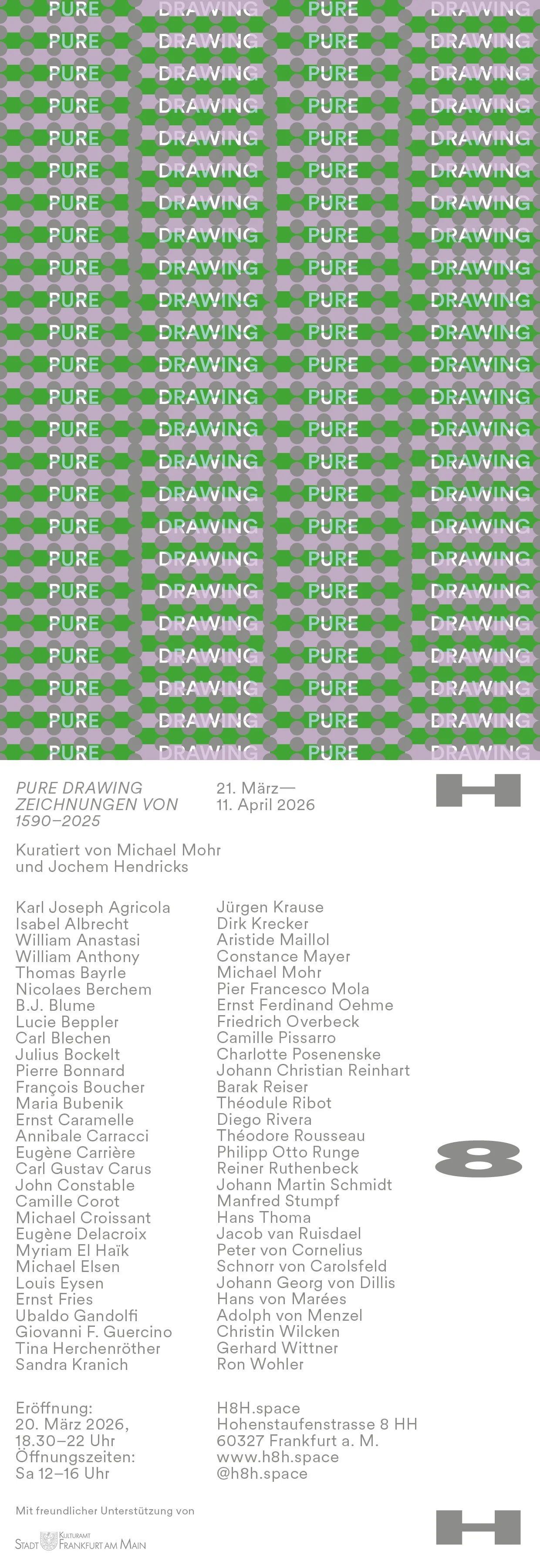 H8H.space wurde im Frühjahr 2024 von dem Künstler Jochem Hendricks in seinem ehemaligen Studio als Ausstellungs- und Veranstaltungsort für zeitgenössische Kunst gegründet, nachdem in den Vorjahren bereits unregelmässig Ausstellungen im Haus stattgefunden hatten. Das H8H befindet sich in einer 1907 erbauten Waffelfabrik in einem Hinterhof zwischen Hauptbahnhof und Messe. Die Etage im Erdgeschoss hat 70m2 und wurde im August 2024 mit Fördermitteln der Stadt Frankfurt zu einem attraktiven Ausstellungsraum im Industriestil umgebaut.