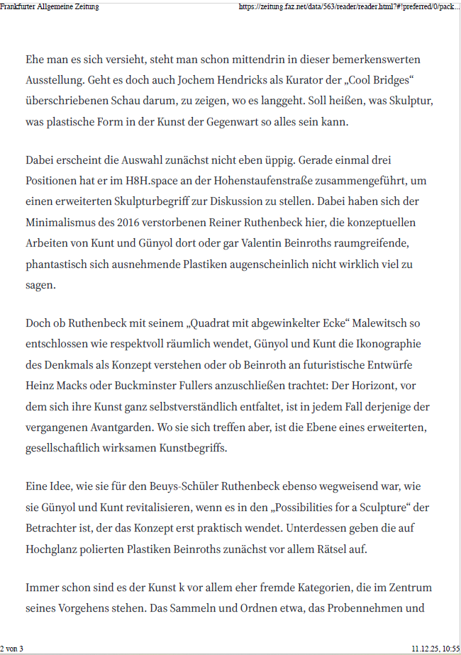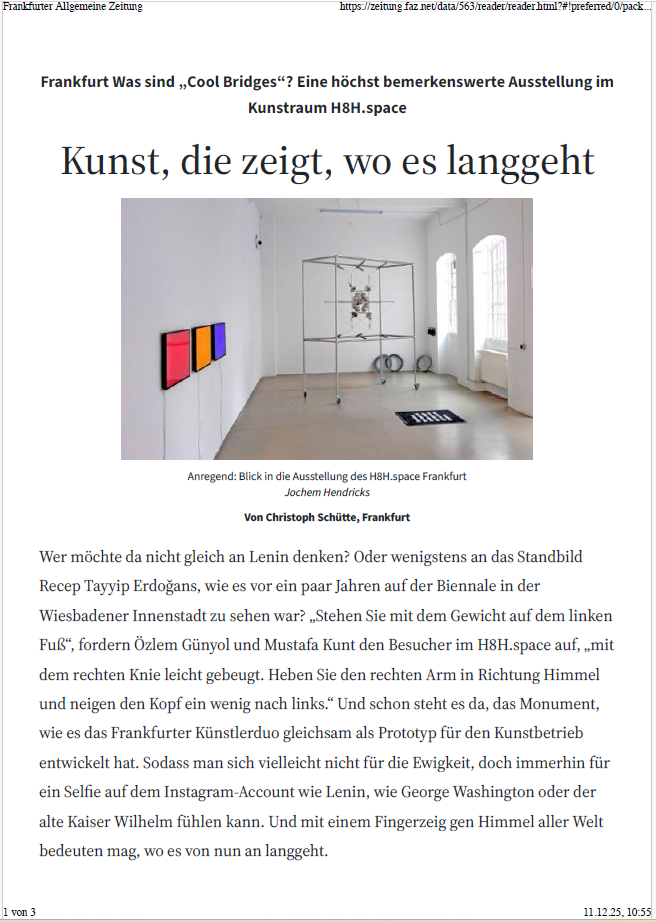Wir laden herzlich zur Finissage der aktuellen Ausstellung “Cool Bridges” am 18.12.2025 ein. Beginn ist 18.30 Uhr